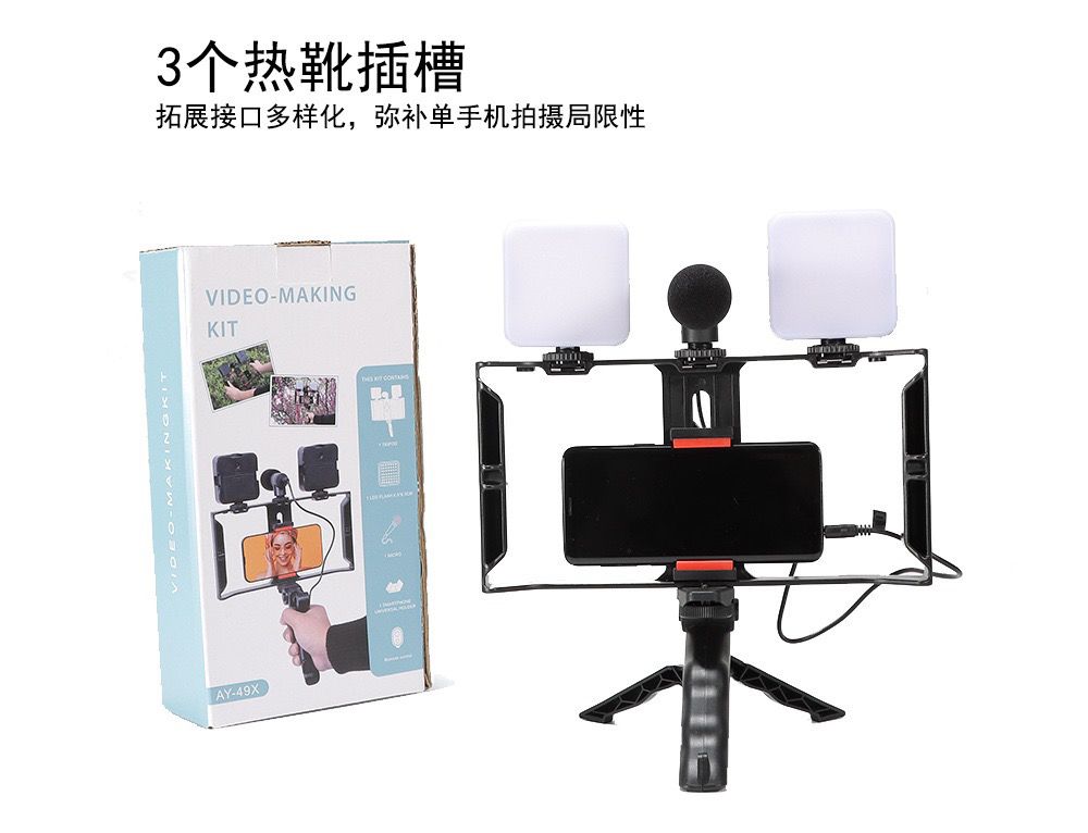 Video-Making Kit AY-49X: "طقم تصوير متكامل يمنحك إضاءة احترافية وصوتًا واضحًا وثباتًا عاليًا… كل ما تحتاجه لصنع فيديوهات احترافية بهاتفك بسهولة وفي أي مكان."