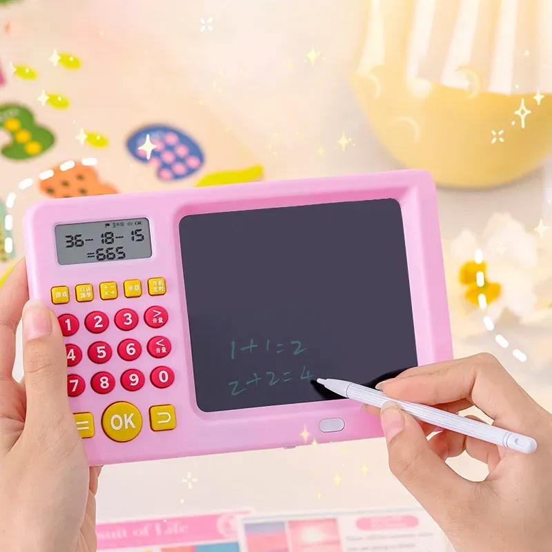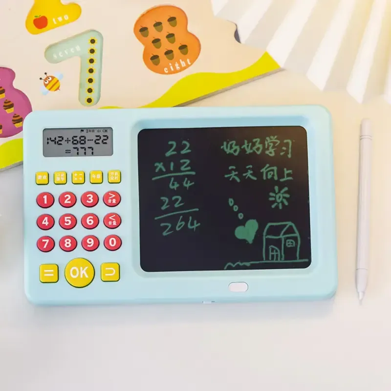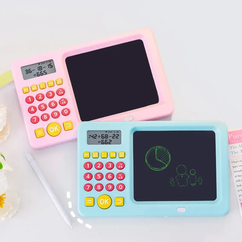 لوحة كتابة LCD تعليمية مع آلة حاسبة تساعد الأطفال على التعلم والرسم بسهولة، بشاشة قابلة للمسح وقلم مرفق يجعل الدراسة أكثر متعة وإبداعًا.