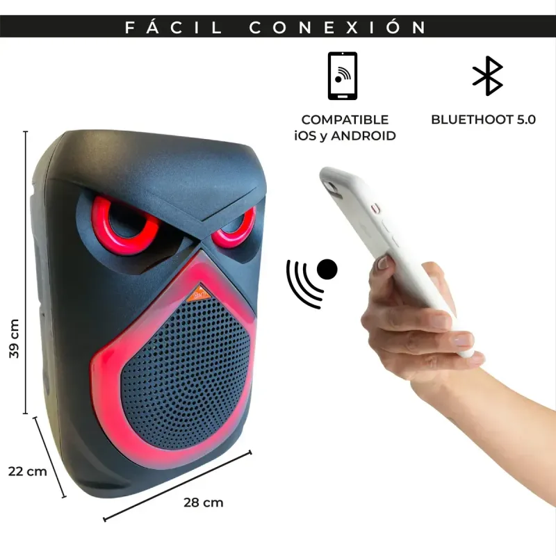 انطلق في عالم الموسيقى مع هذه السماعة القوية التي تجمع بين الأداء العالي والتصميم العصري المضيء. تتميز بإضاءة LED متعددة الألوان تضيف أجواء حماسية لأي مناسبة، وميكروفون كارايوكي عالي الجودة يجعل الغناء أكثر متعة.