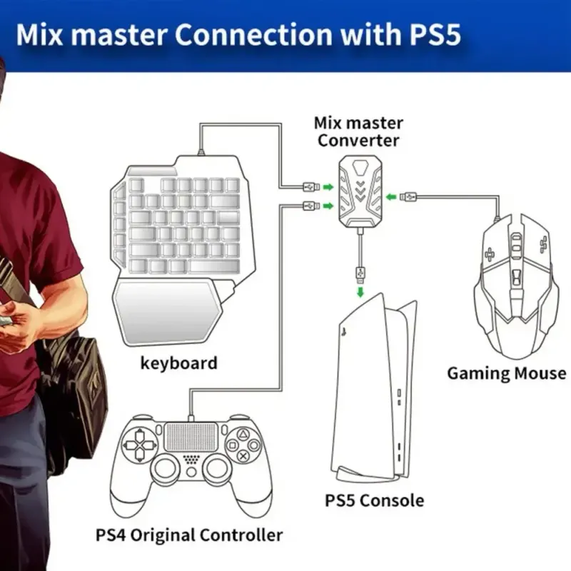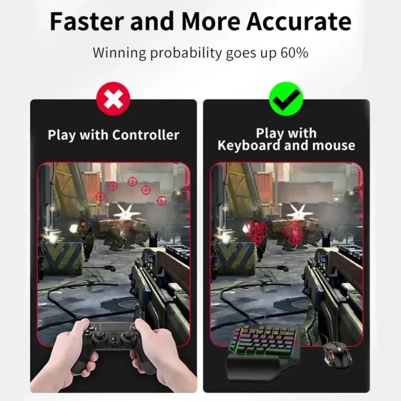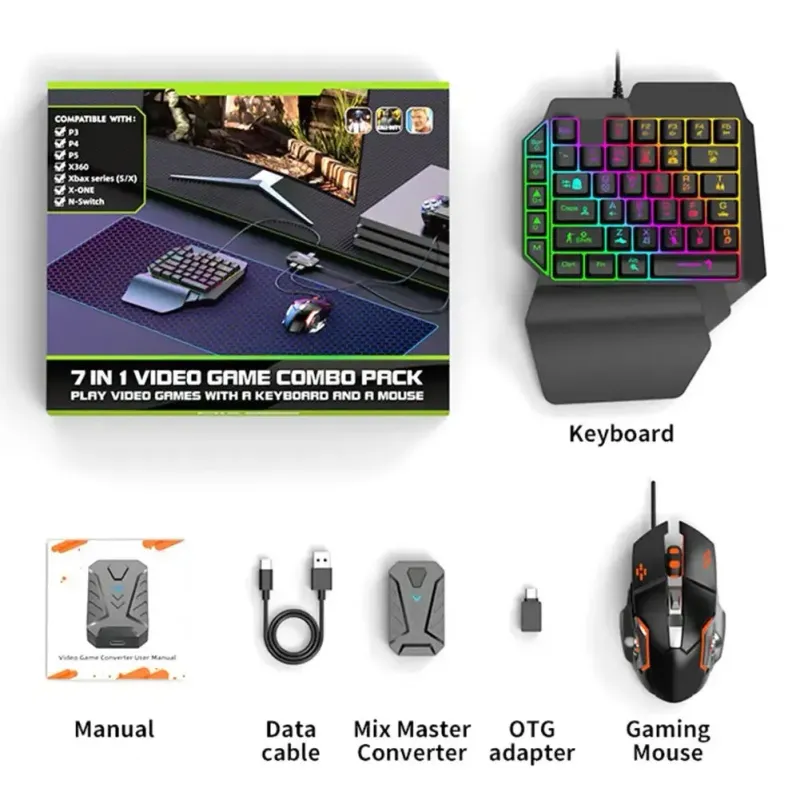 احصل على سيطرة كاملة في ألعابك مع هذا الطقم المتكامل الذي يضم لوحة مفاتيح، فأرة ألعاب، محوّل تحكم، وكابل بيانات!