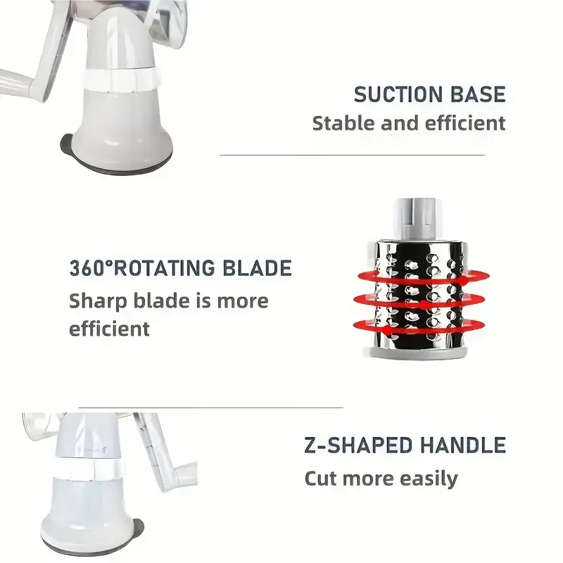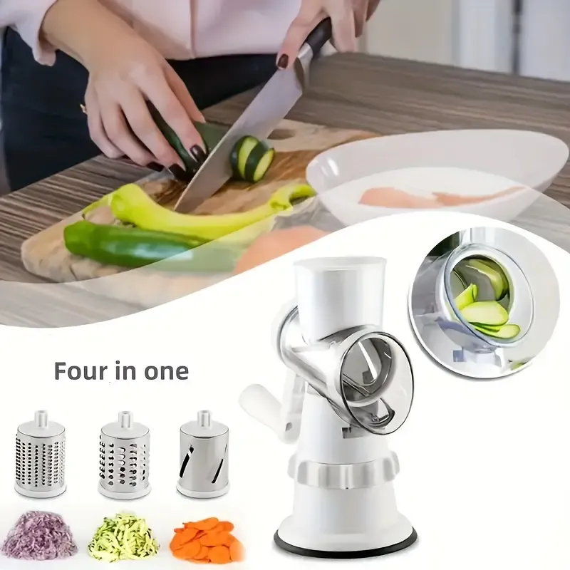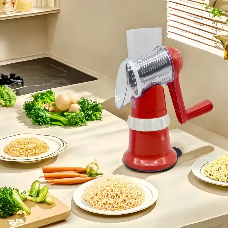 المنتج اصلي و بمواصفات عامبشرة خضروات يدوية متعددة الوظائف 🍆 مزودة بـ3 شفرات قابلة للتبديل لتقطيع وشرائح وبرش الخضروات بسهولة وسرعة، بتصميم آمن وثابت يوفر لك الوقت والجهد في المطبخ.لمية