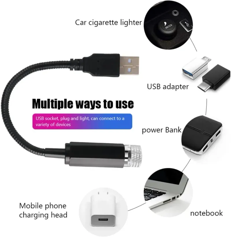 سلفار جهاز عرض النجوم لسقف السيارة بمنفذ USB مع 3 اوضاع، مصباح ليلي مرن قابل للحمل بمنفذ USB قابل للتعديل للديكور الداخلي للسيارة مع جو مجرة رومانسي يناسب السيارة والسقف وغرفة النوم والحفلات
