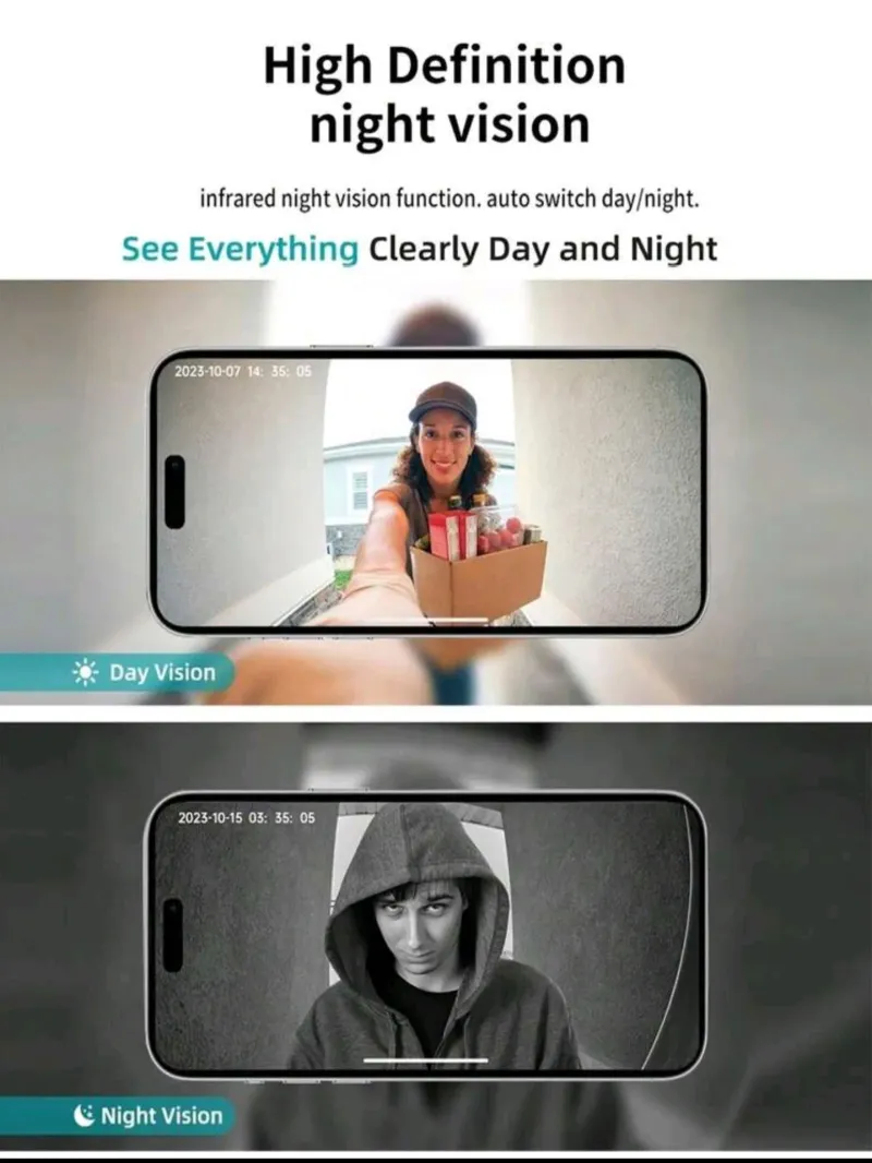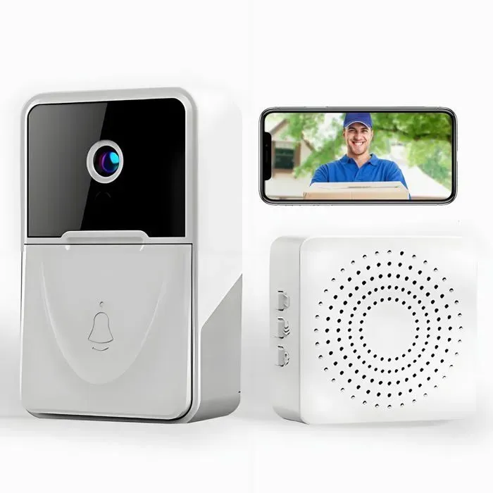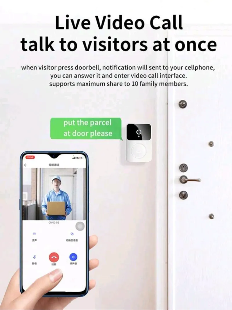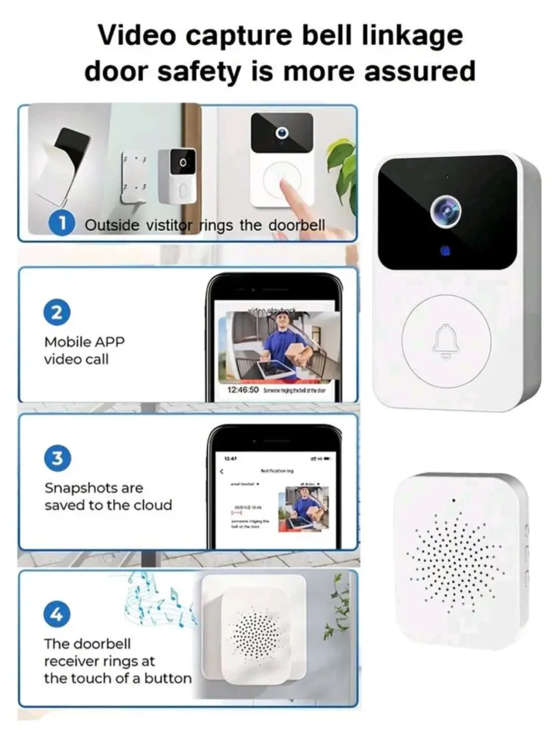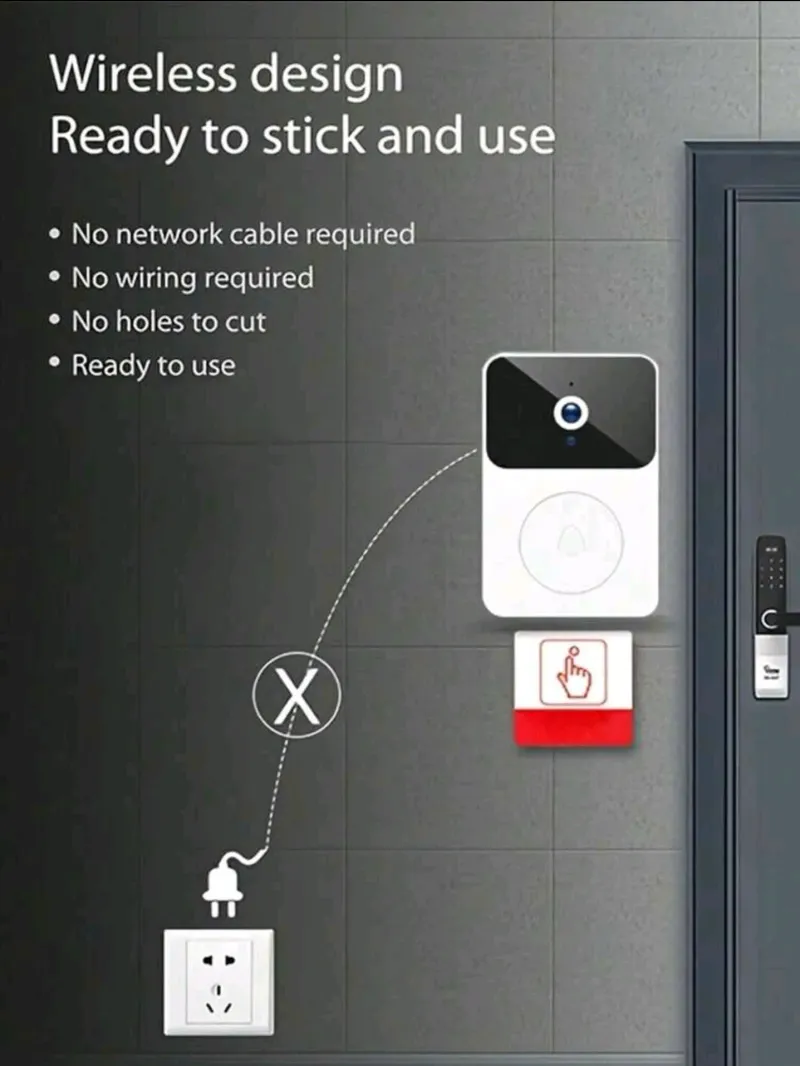 🚪📹 جرس باب ذكي بالكاميرا WiFi شوف وتكلم مع أي شخص عند باب منزلك مباشرة من هاتفك. إشعارات فورية، رؤية ليلية، وجرس داخلي لاسلكي لراحة وأمان أكبر. حل مثالي لمراقبة باب دارك وين ما تكون 🔒📱