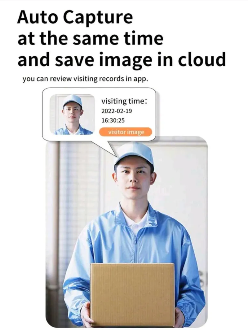 يلتقط صور أو فيديوهات عند وجود حركة أو ضغط على الجرس، ويمكن حفظها للرجوع إليها لاحقًا (حسب إعدادات التطبيق).