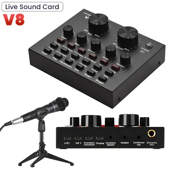 نقدم لك طقم التعليق الصوتي الإحترافي الذي يأتي بميكروفون وحامل خاص به لتثبيته فوق مكتبك، وبطاقة الصوت عالية الجودة التي ستساعدك في تحسين جودة الصوت أثناء التسجيل، كما يأتي مع سماعات عازلة للضوضاء لتتمتع بتسجيلات خرافية لصوتياتك. طقم التعليق الصوتي الإحترافي 4في1. وبطاقة الصوت عالية الجودة التي ستساعدك في تحسين جودة الصوت. يأتي مع سماعات عازلة للضوضاء.