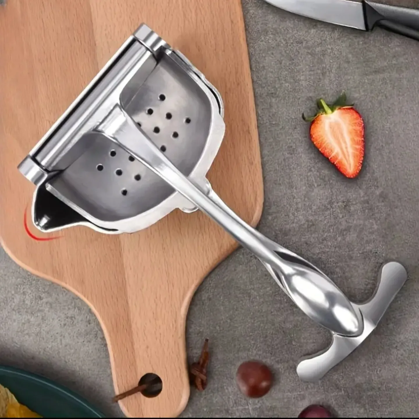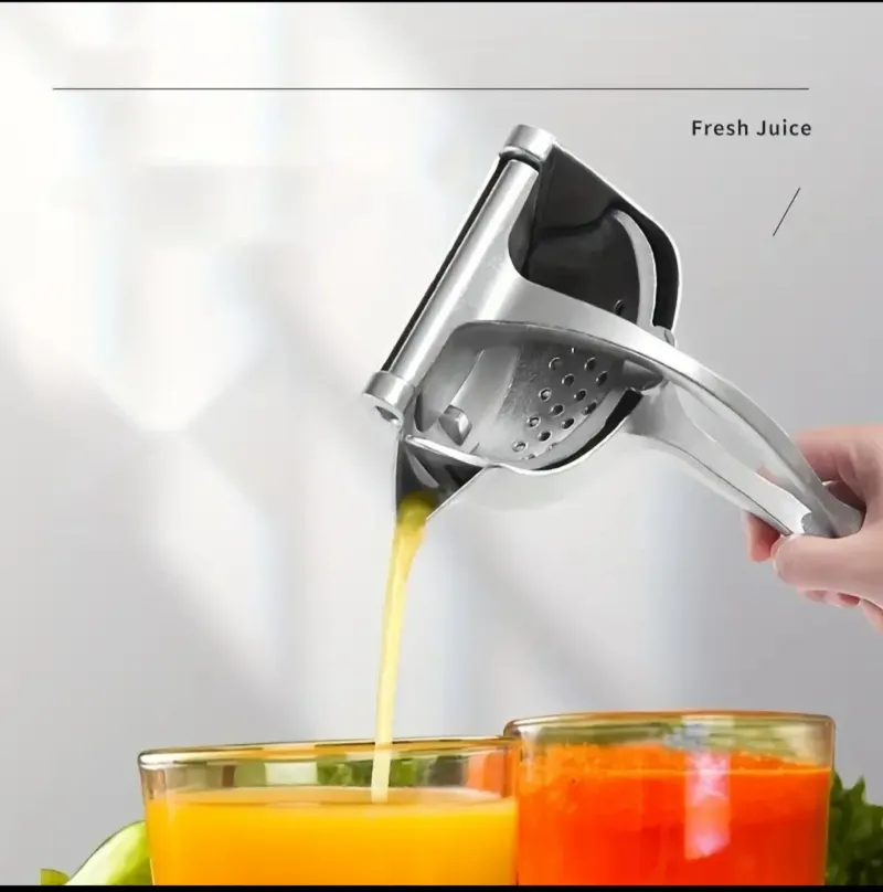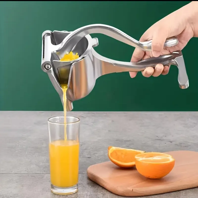 احصل على عصير طازج وصحي في ثوانٍ! عصّارة يدوية متينة مصنوعة من الألمنيوم المقاوم للصدأ، تعصر البرتقال والليمون والرمان بكفاءة عالية دون مجهود. مثالية للمطبخ أو السفر، وسهلة التنظيف.